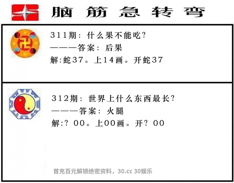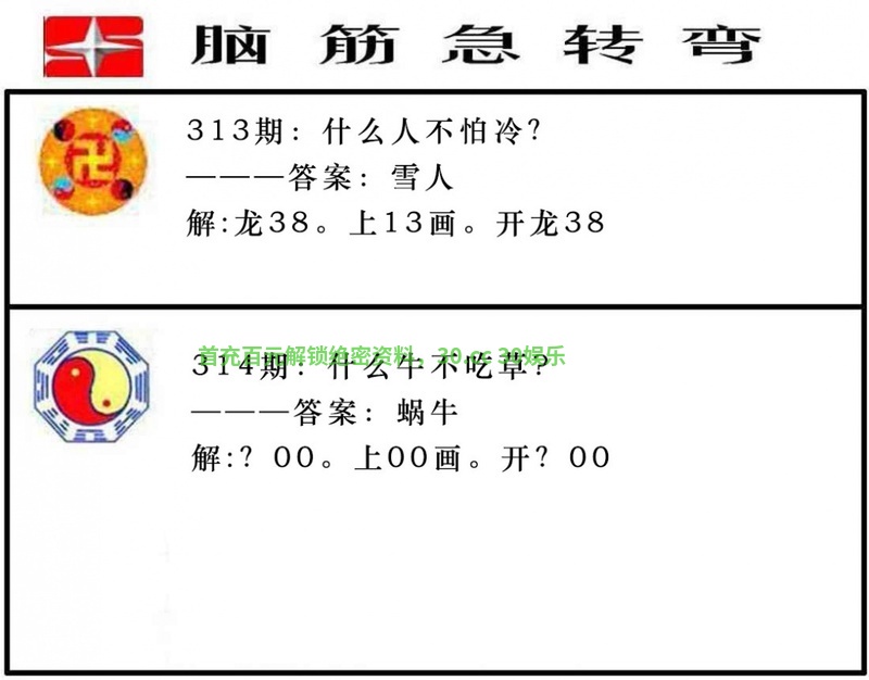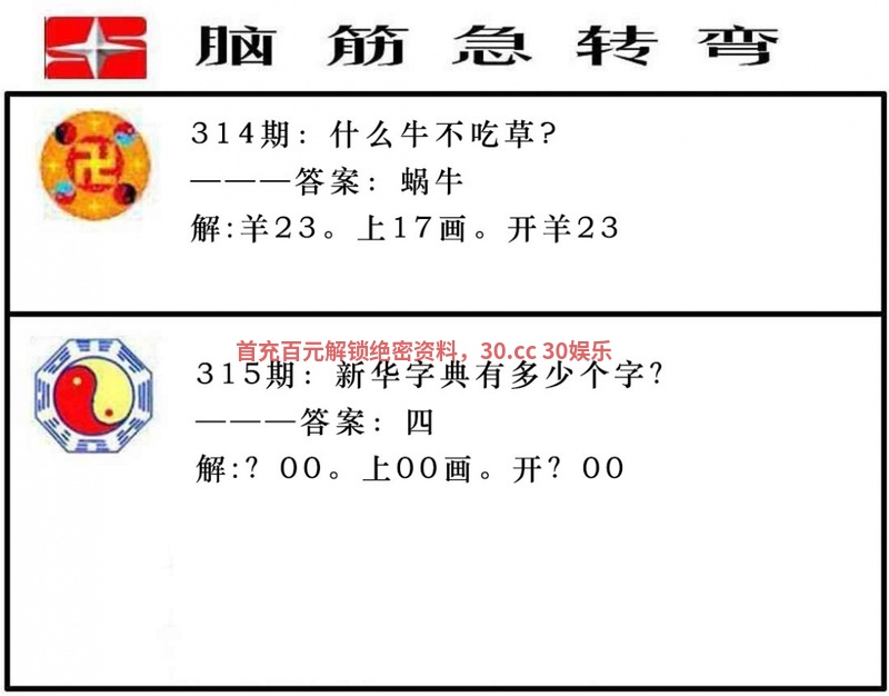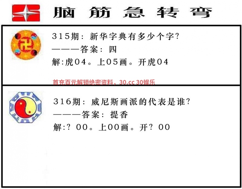 317期:猜字谜/有一说一诗/包不同送特/黄大仙欲钱料/最老版开门